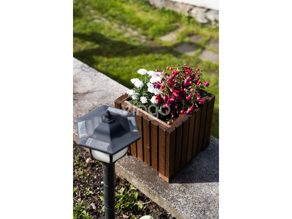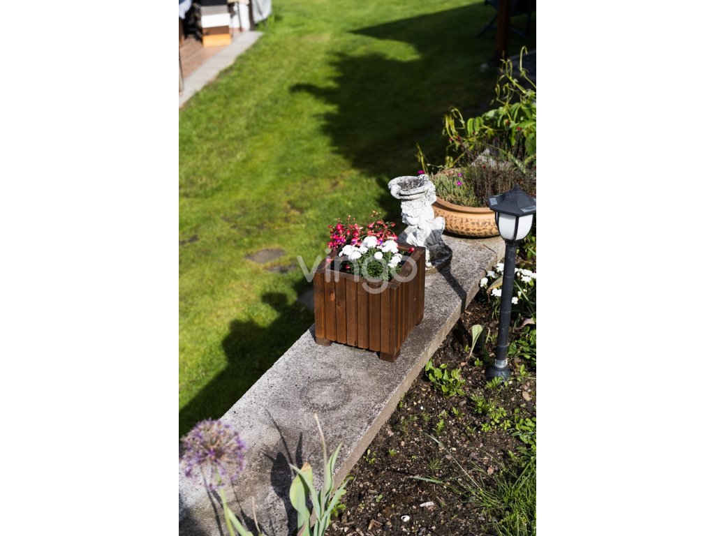 - Dřevěný: Na výrobu bylo použito borovicové dřevo, které je velice kvalitní a má velmi dlouhou životnost. Přírodní textura a barva dřeva dodávají truhlíku autenticitu a teplý vzhled.