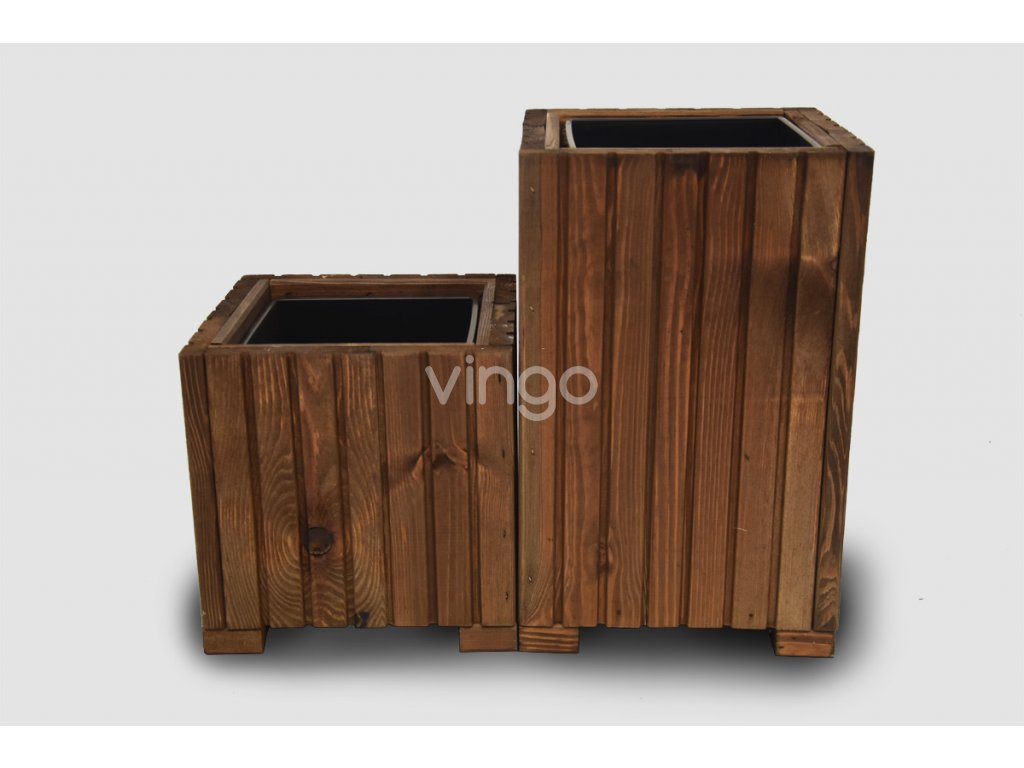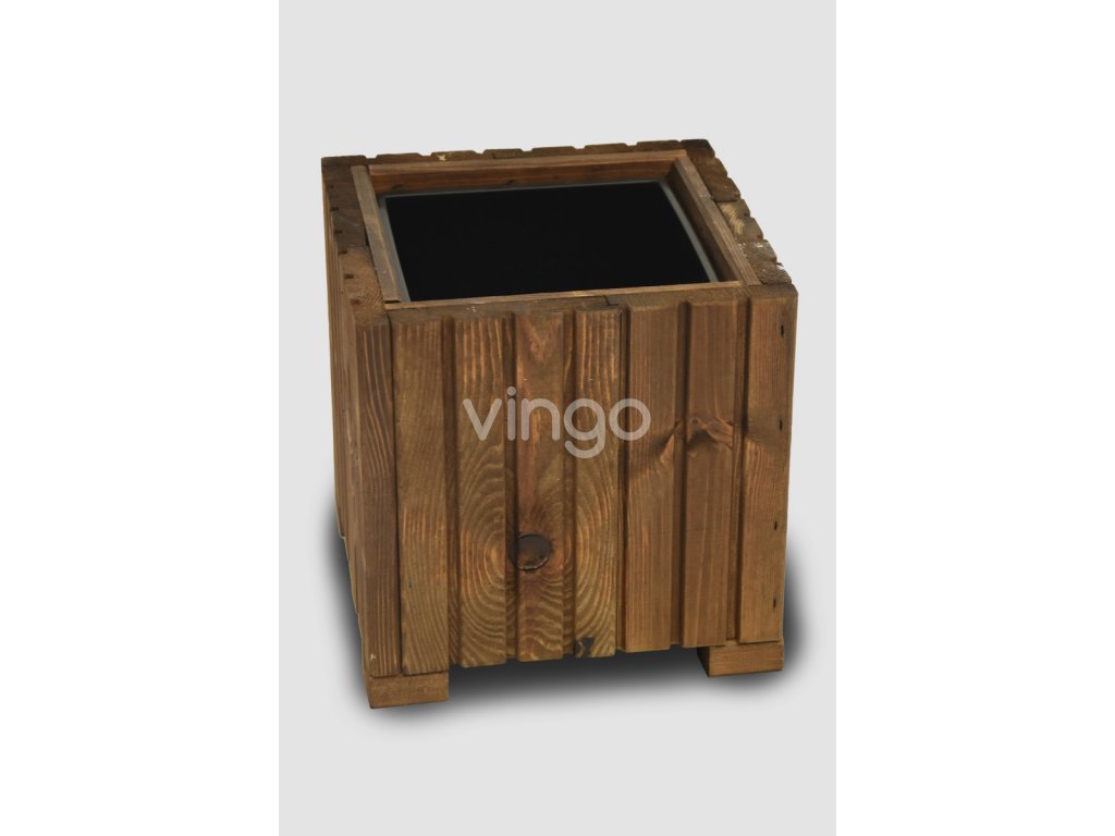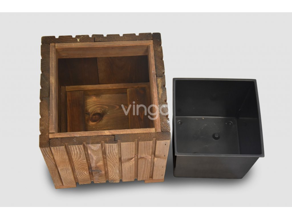 Čtvercový dřevěný truhlík s plastovou vložkou - hnědý, 25x25x25