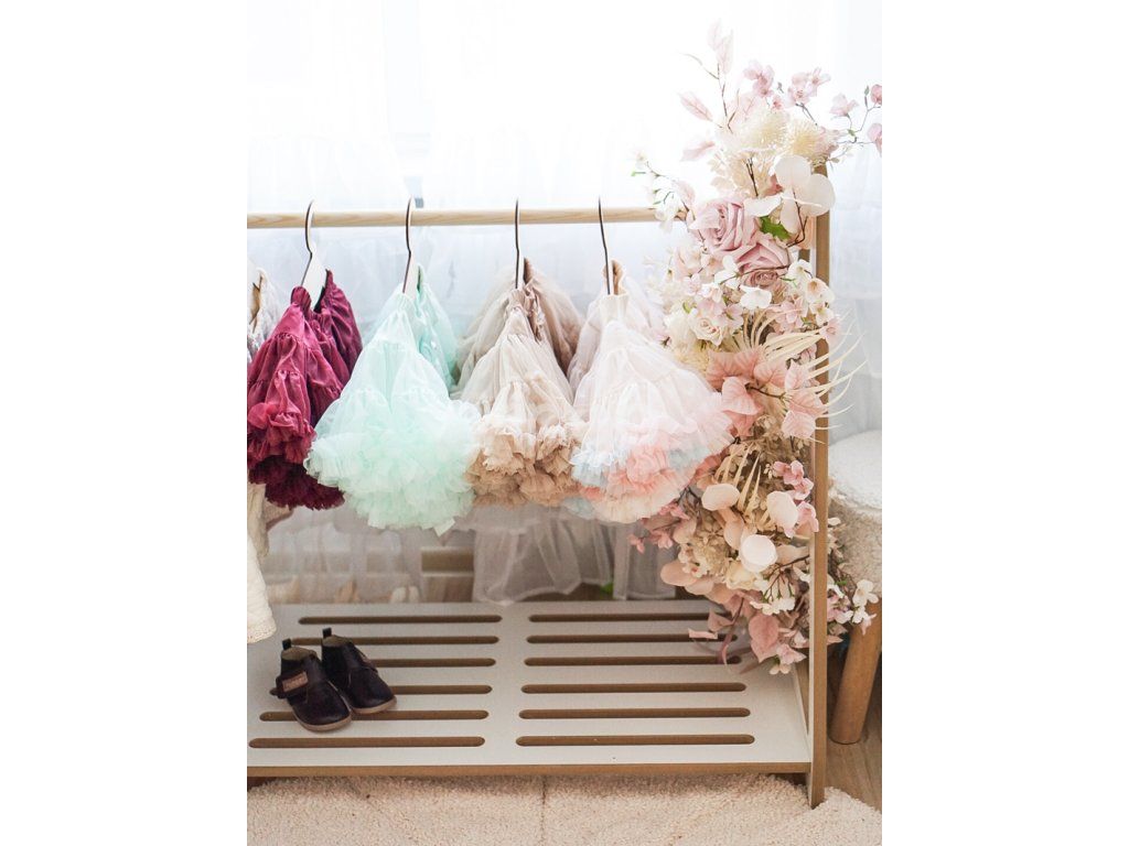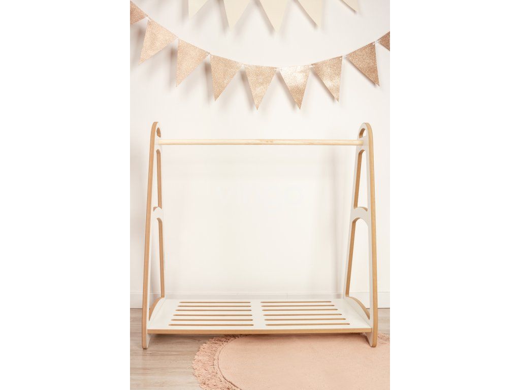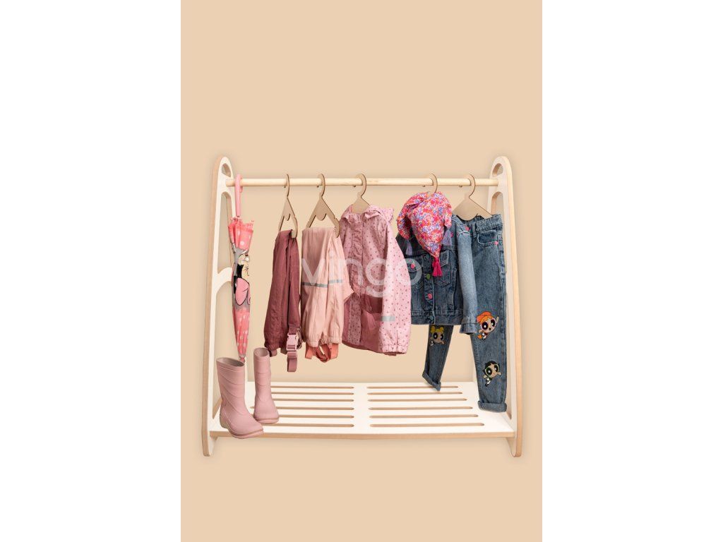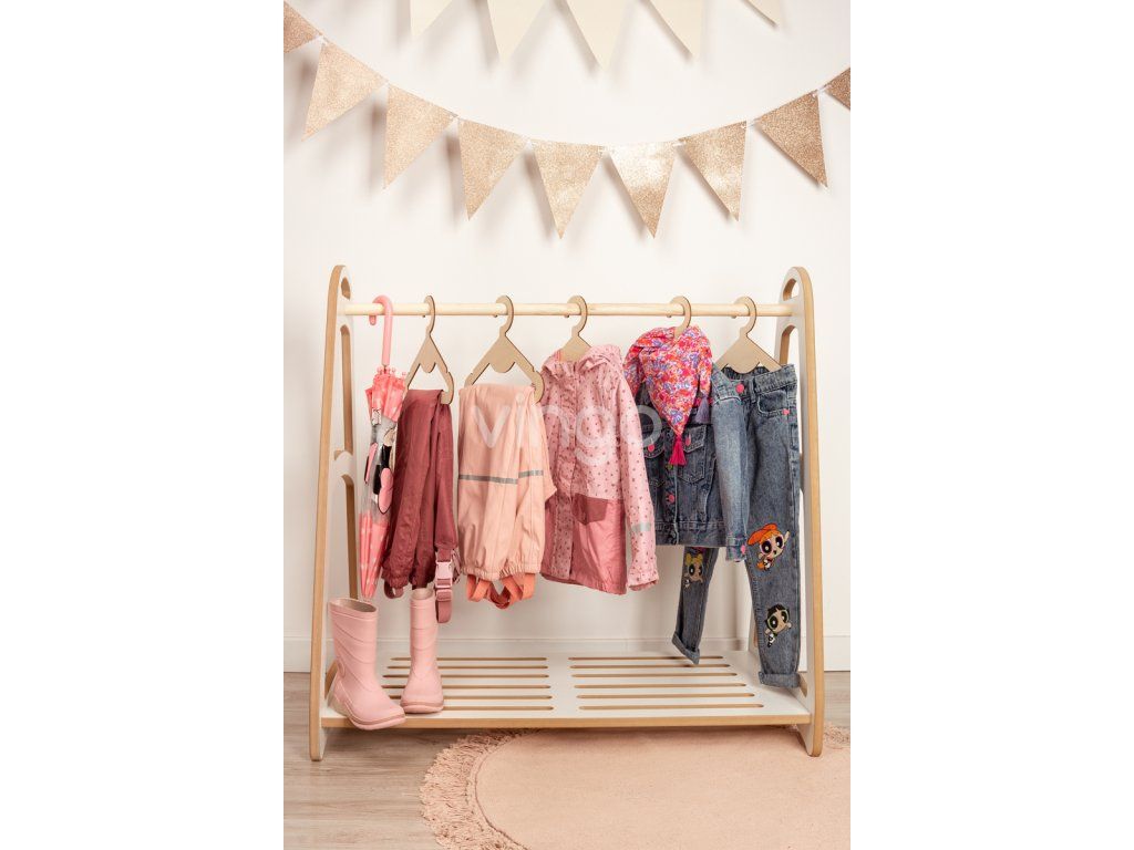 - Nízký: Věšák je navržen tak, aby byl přizpůsoben dětské výšce, což dětem umožňuje snadno dosáhnout na své oblečení bez pomoci dospělých. To podporuje jejich samostatnost a umožňuje jim aktivně se zapojit do každodenního oblékání. Výška věšáku je 90cm, šířka 92 cm a hloubka 51 cm.
