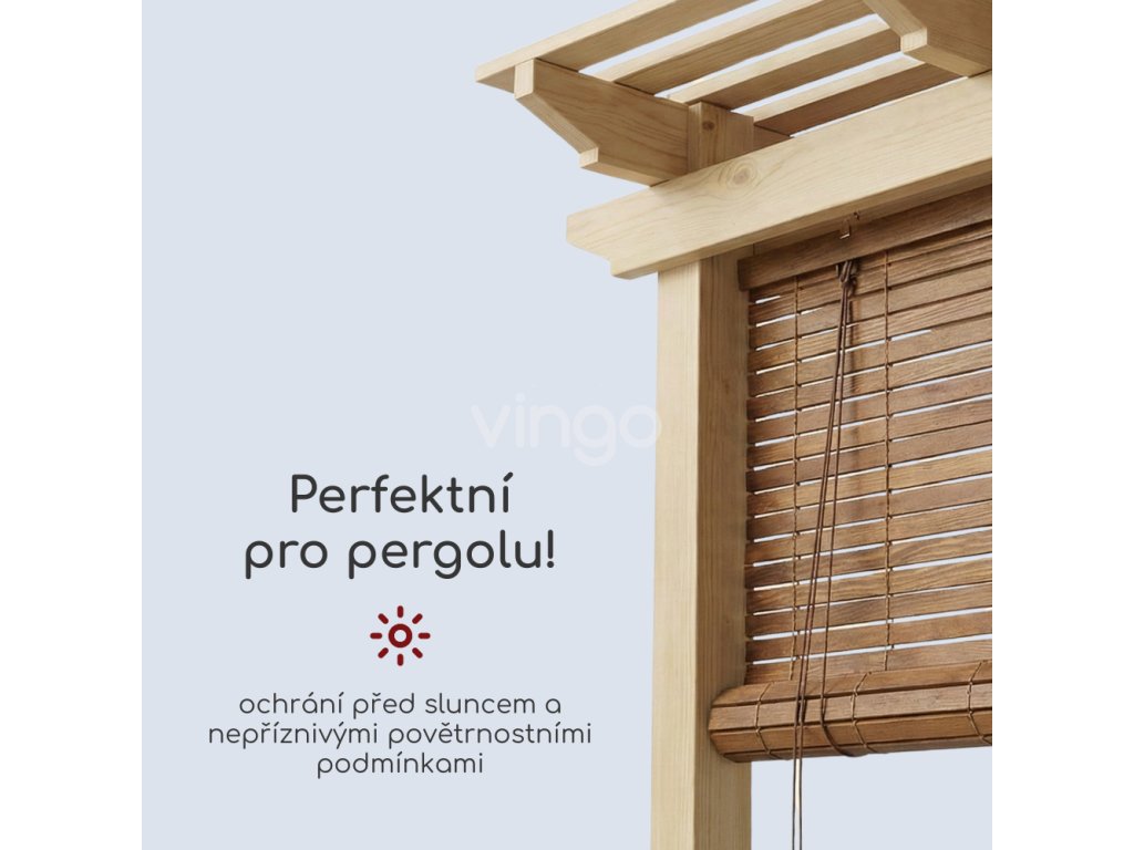 - dřevěné rolety chrání před ostrým sluncem i horkem a také před větrem: ideální pro otevřené pergoly, altány, terasy či balkóny