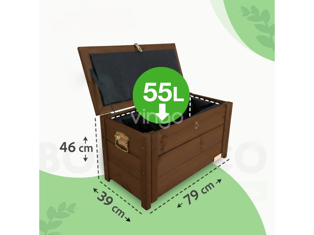 Masivní konstrukce z borovicového dřeva, kovové panty a uzamykatelné víko zajišťují dlouhou životnost a bezpečné skladování potravin. Víko chrání obsah také před hlodavci a nečistotami.