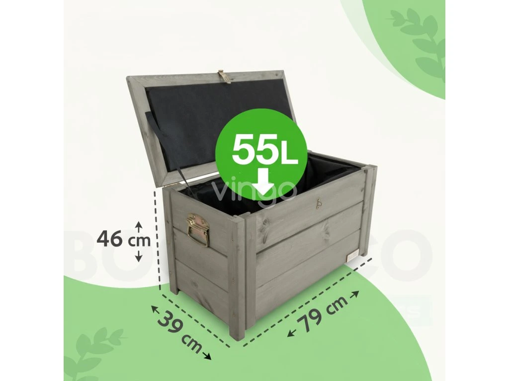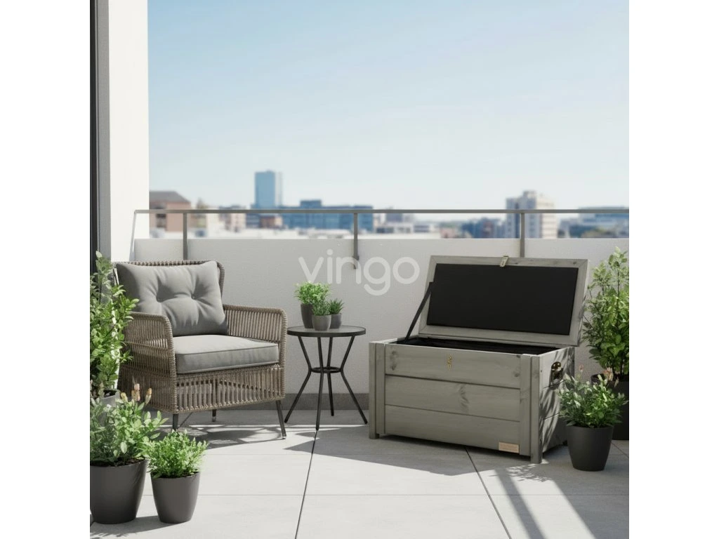 Dřevěná truhla v elegantní šedé barvě je ideálním řešením pro přehledné a bezpečné uložení věcí na zahradě, terase, balkoně i v interiéru. Je vyrobena z kvalitního borovicového dřeva a opatřena impregnací, která zvyšuje její odolnost vůči vlhkosti i venkovním podmínkám.