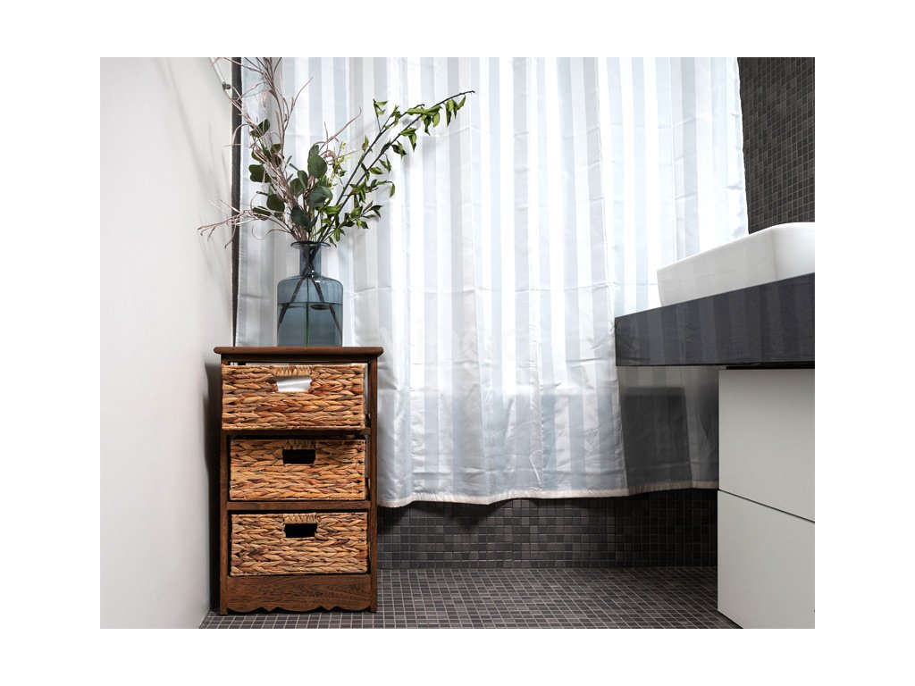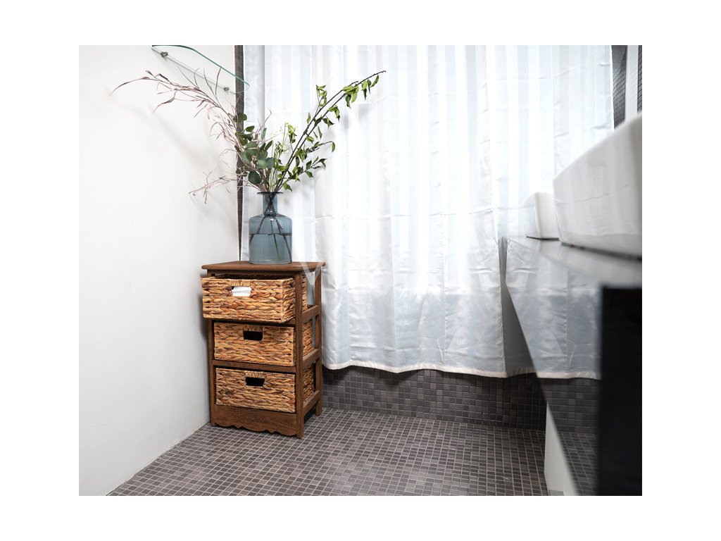- S košíky: 3 košíky s kovovou konstrukcí a výpletem z kukuřičného šustí mají rozměry 32x24.5, v. 15 cm. Můžete je úplně vyndat, tudíž i při hledání v jejich zadní části nemusíte být dlouho ohnuti. Zásuvky mají průhmaty, za které je snadno uchopíte.