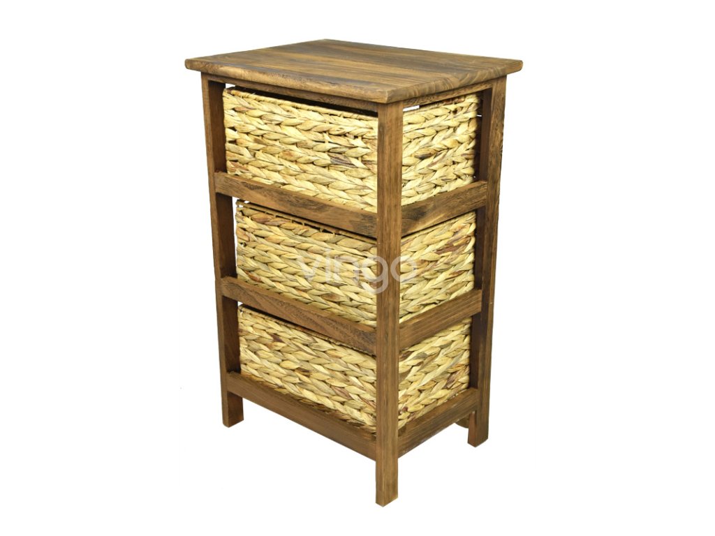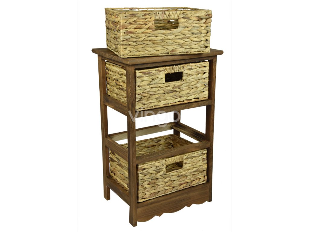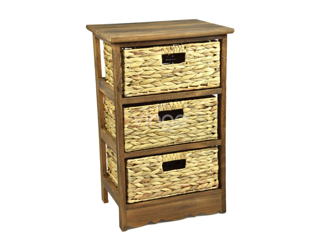 Hnědá dřevěná komoda se 3 košíky, 40 x 63 cm, 2. jakost