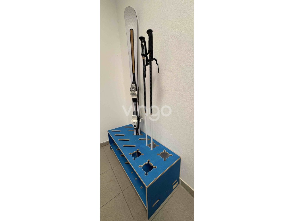 Kombinovaný dřevěný stojan na lyže a hůlky - modrý