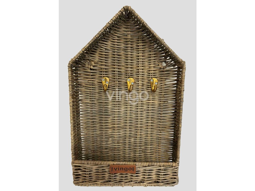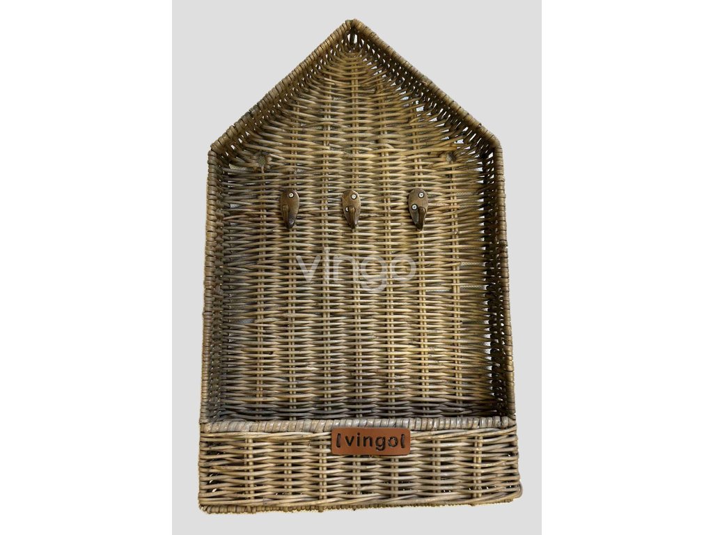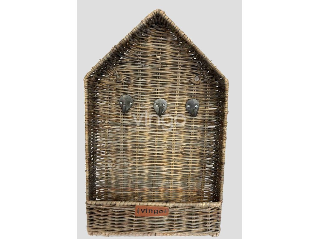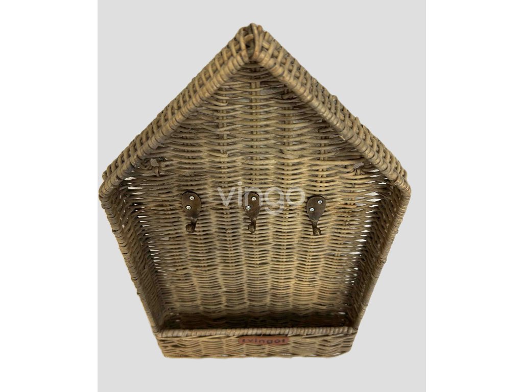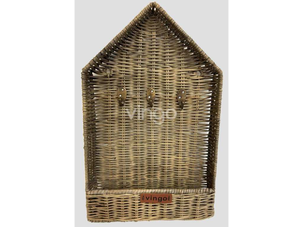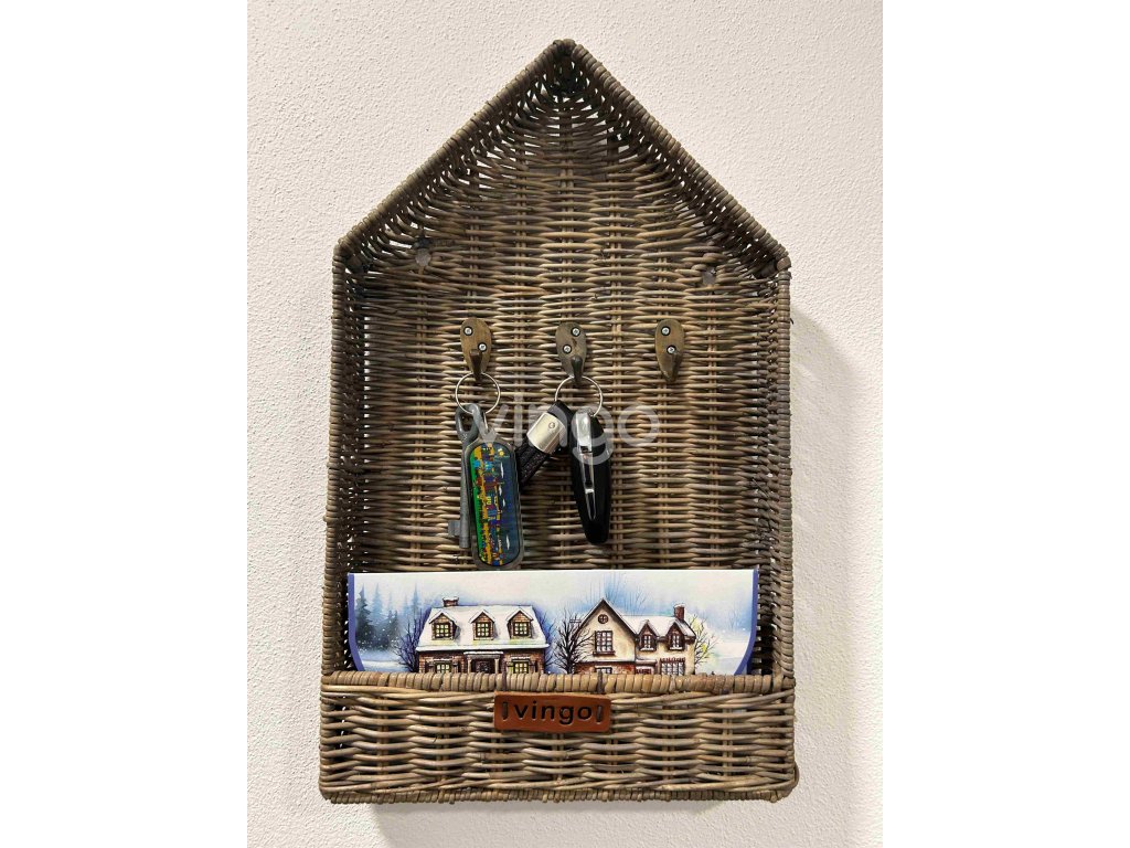 Elegantní nástěnný věšák na klíče z ratanu ve tvaru domečku