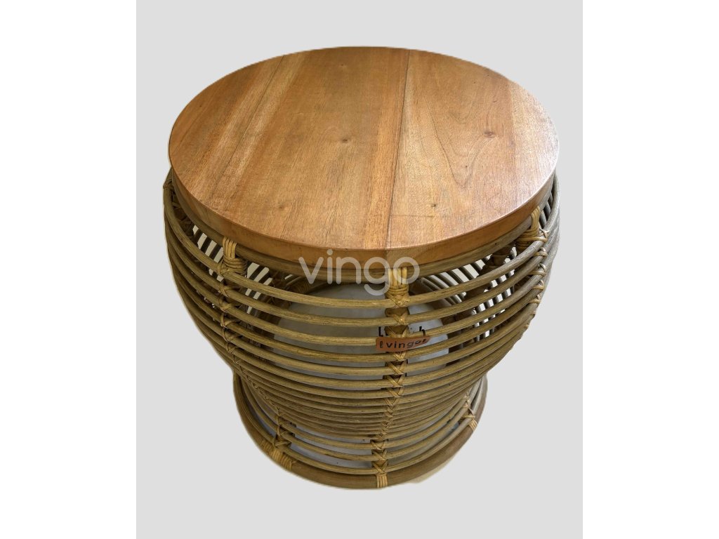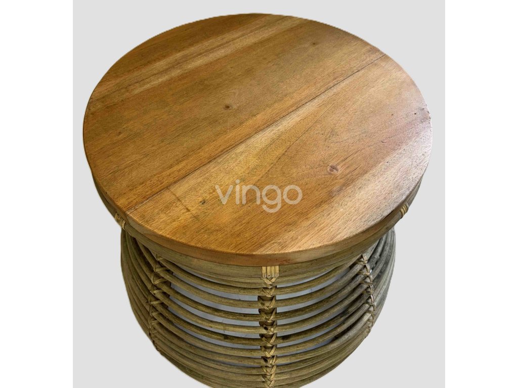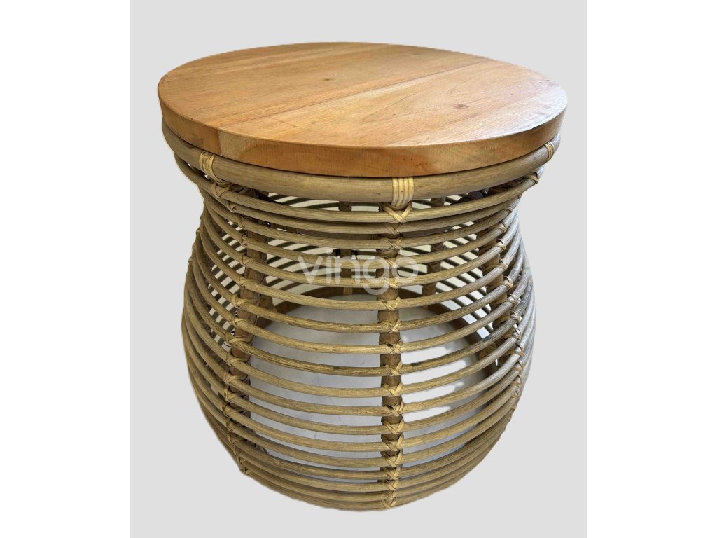 Odkládací stolek z ratanu s dřevěnou deskou, 60 cm