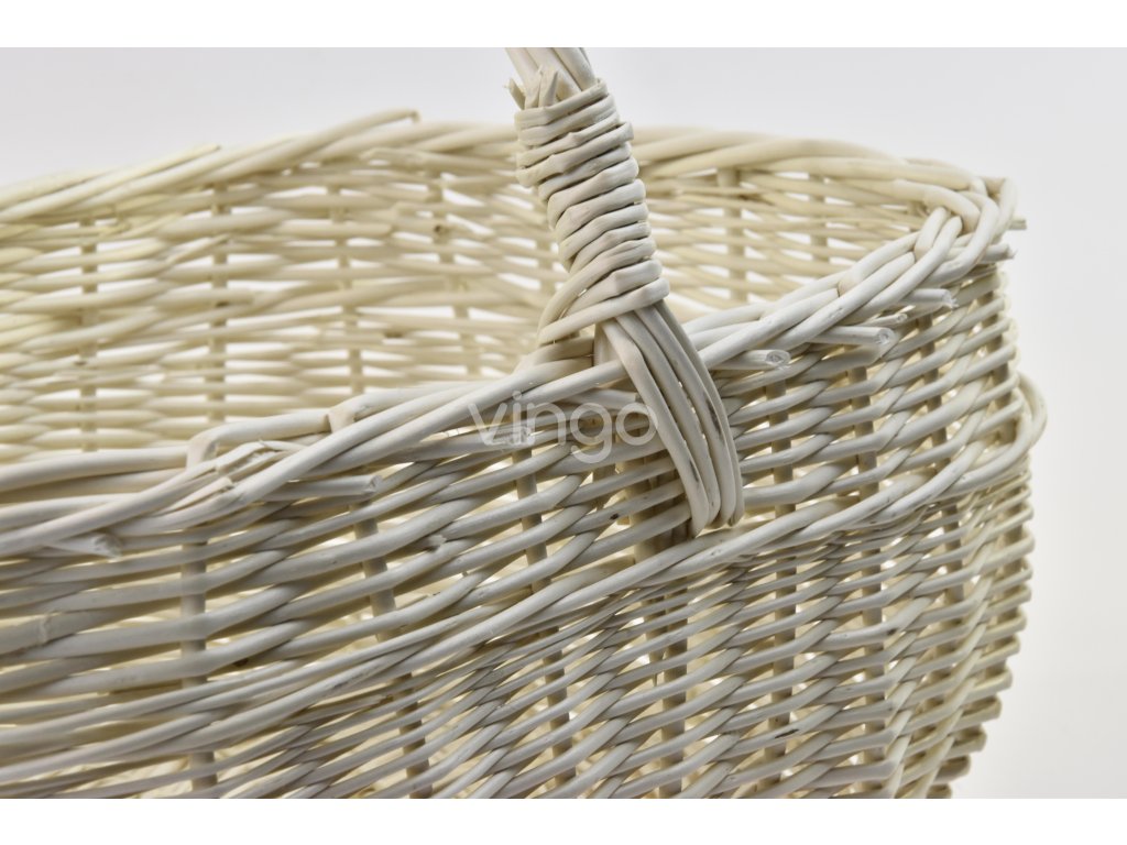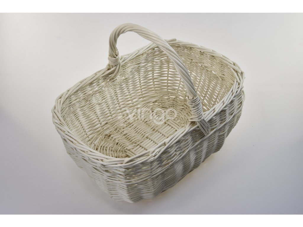 - Stylový: Koš z na bílo obarveného proutí ozvláštněný lehkým zdobným proužkem, obtáčená rukojeť, která padne do ruky. Dno ve tvaru zaobleného obdélníku s rozměry 36 x 26 cm, výška pletené části 15 cm, výška s rukojetí je 30 cm. Skvělý osobní doplněk na menších nákupech i pomocník při převážení ovoce a zeleniny ze zahrádky.