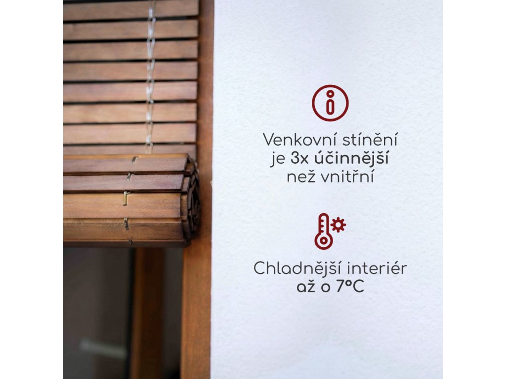 - Drevené rolety chránia pred ostrým slnkom a teplom