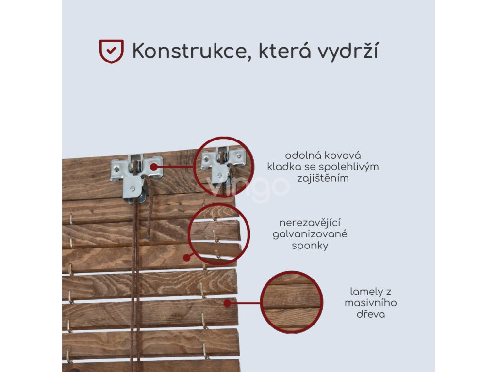 - vonkajšie drevené rolety odolávajú občasnému vetru a dažďu