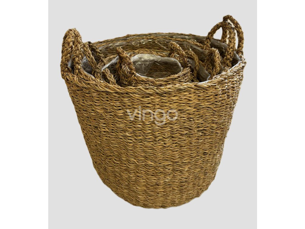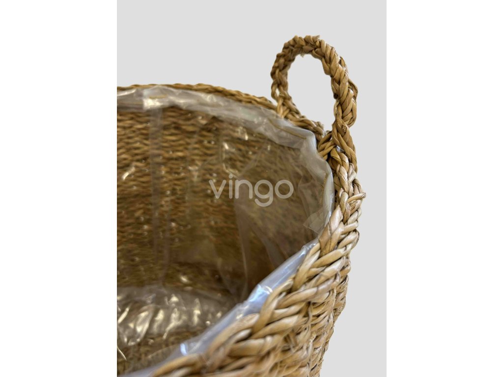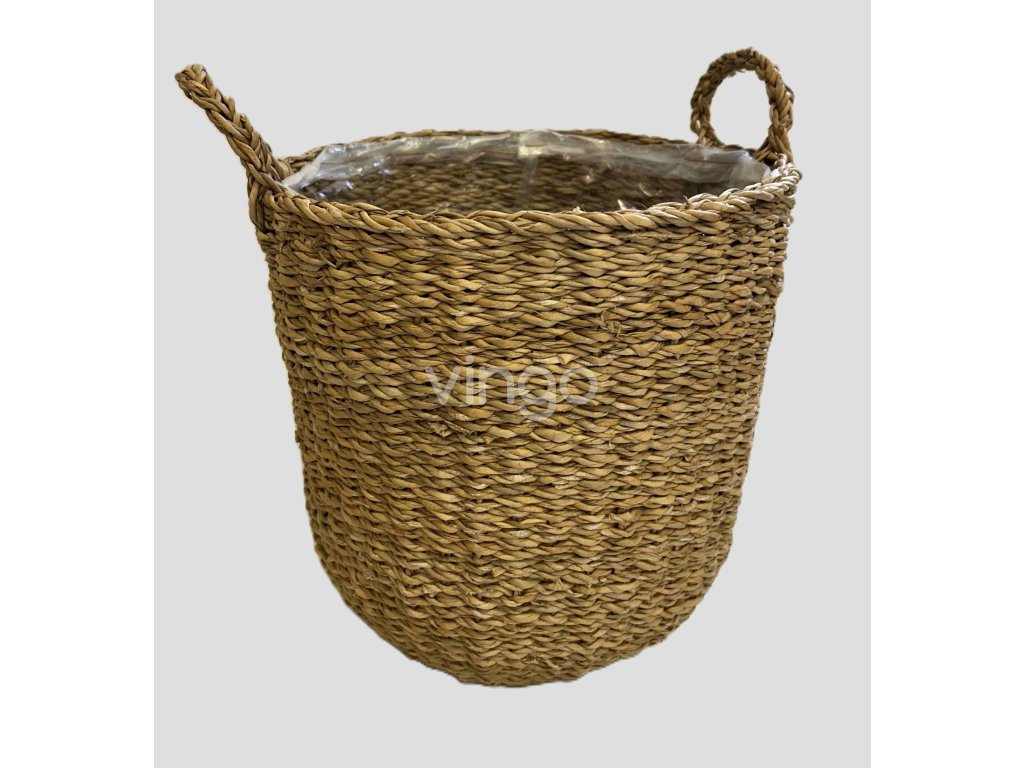 Úložný box z mořské trávy s igelitovou vložkou, kulatý