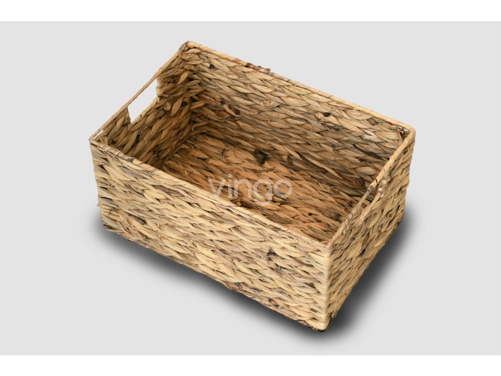 Úložný košík z kukuřičného šustí, hranatý – s látkou