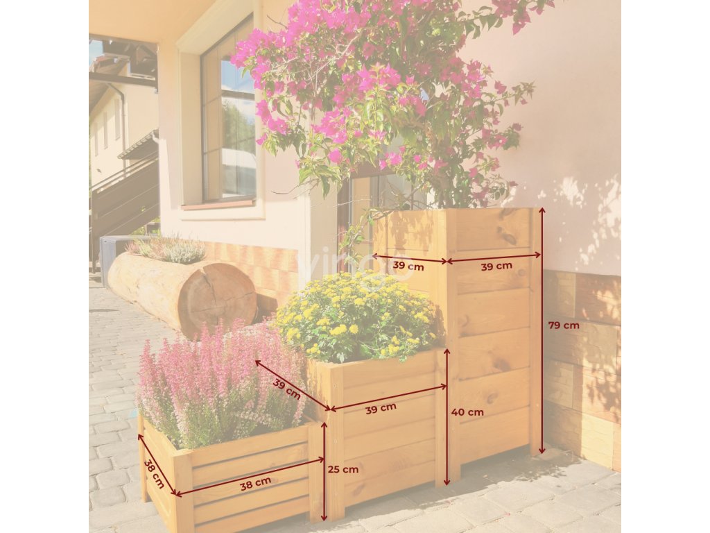 - Praktický: V dřevěný květináči můžete rostliny pěstovat po celý rok. Je perfektní na nízké i vysoké rostliny, květiny i bylinky. Truhlík má rozměry 39 x 39 cm a výšku 79 cm. Dolní přepážka je 36 cm od vrchní hrany truhlíku
