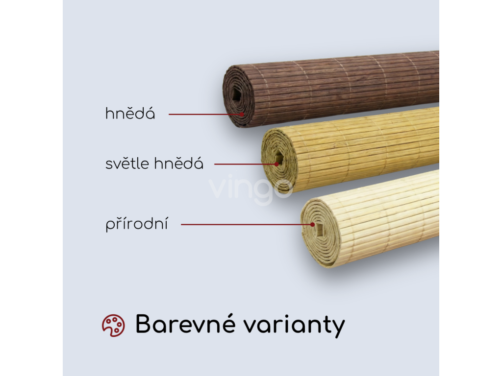 Bambusové rolety se vyrábějí ručně a navíc z čistě přírodního materiálu. To znamená, že se mírně liší jejich odstíny a také rozestupy mezi jednotlivými lamelami. Některé doléhají těsně, v jiných je sem tam škvírka. Pokud s výběrem váháte, zavolejte. Rádi vám poradíme. Zavolejte 604 329 707 nebo napište JSMETUPROVAS@VINGO.CZ nám.